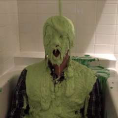 StagedStooge got a custard-filled balloon busted over his head by michiganpie1